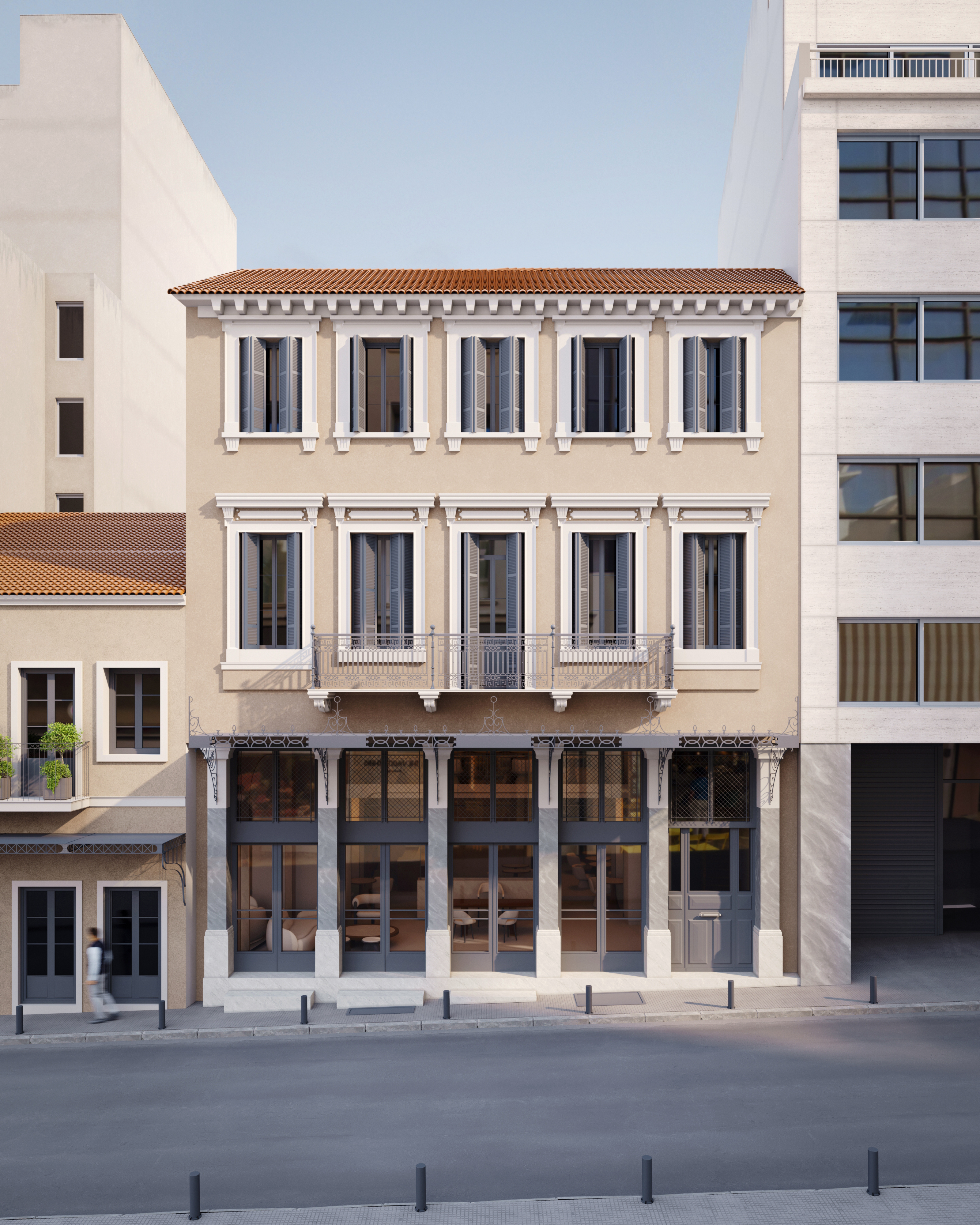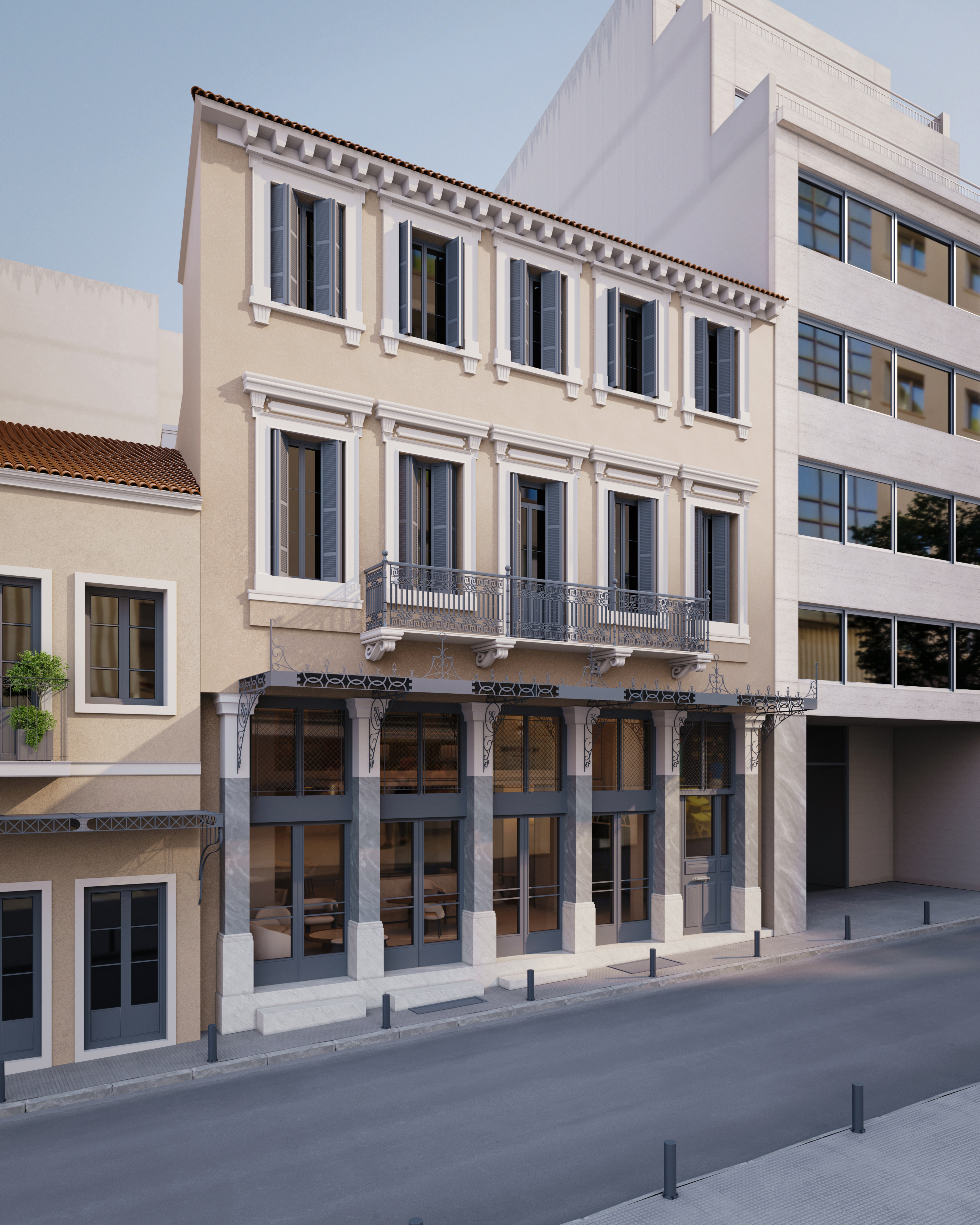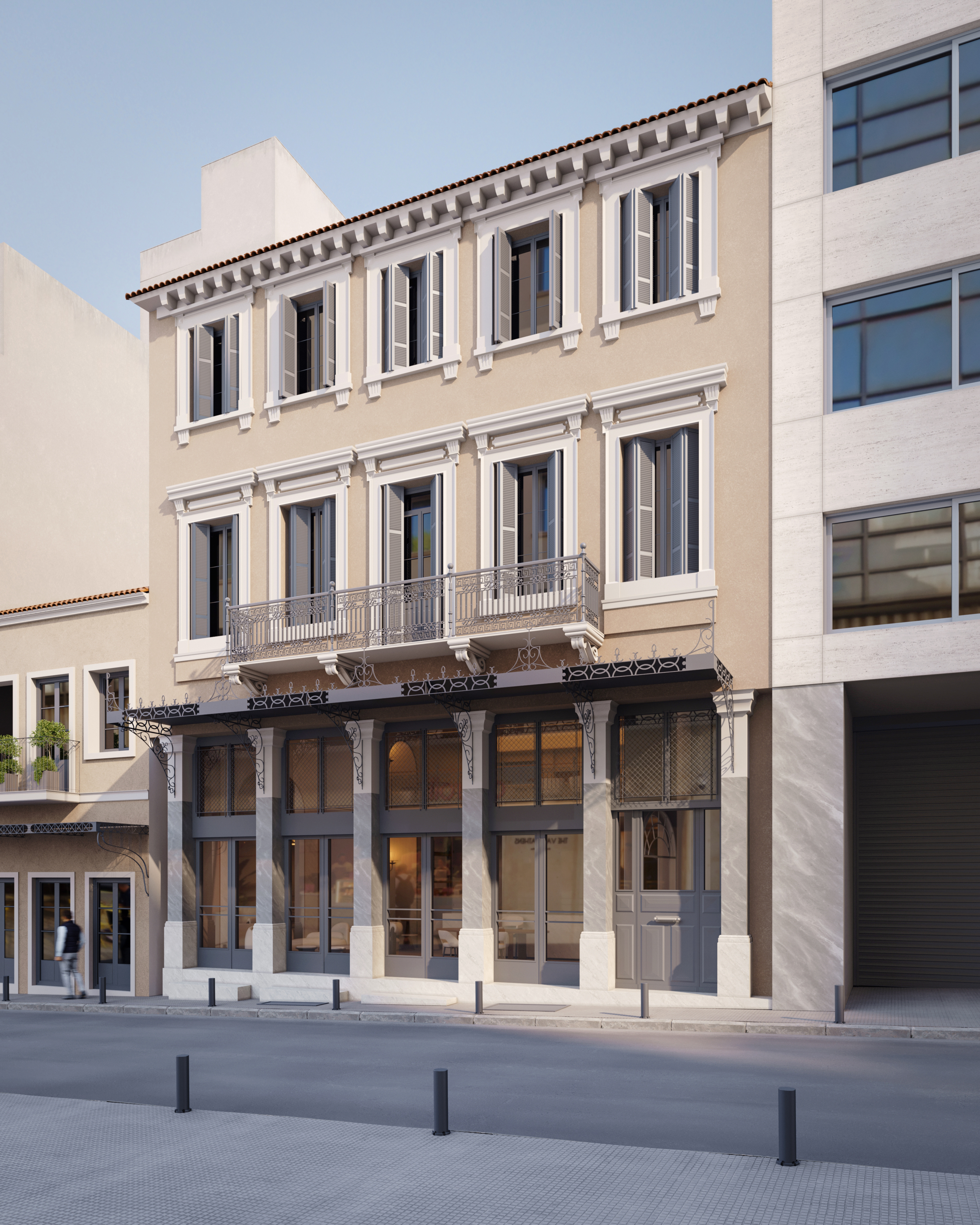 The project involves the preservation, restoration, and extension of a listed building at Praxitelous Street, in the historic commercial center of Athens. The proposal focuses on restoring and preserving the characteristic façade, optimizing the site through the removal of incompatible elements and the addition of a new, clean-built volume, and adapting the building for reuse as a hotel. The design includes a ground-floor reception area and a mezzanine-level breakfast room, supported by upgraded facilities that meet contemporary hospitality standards.