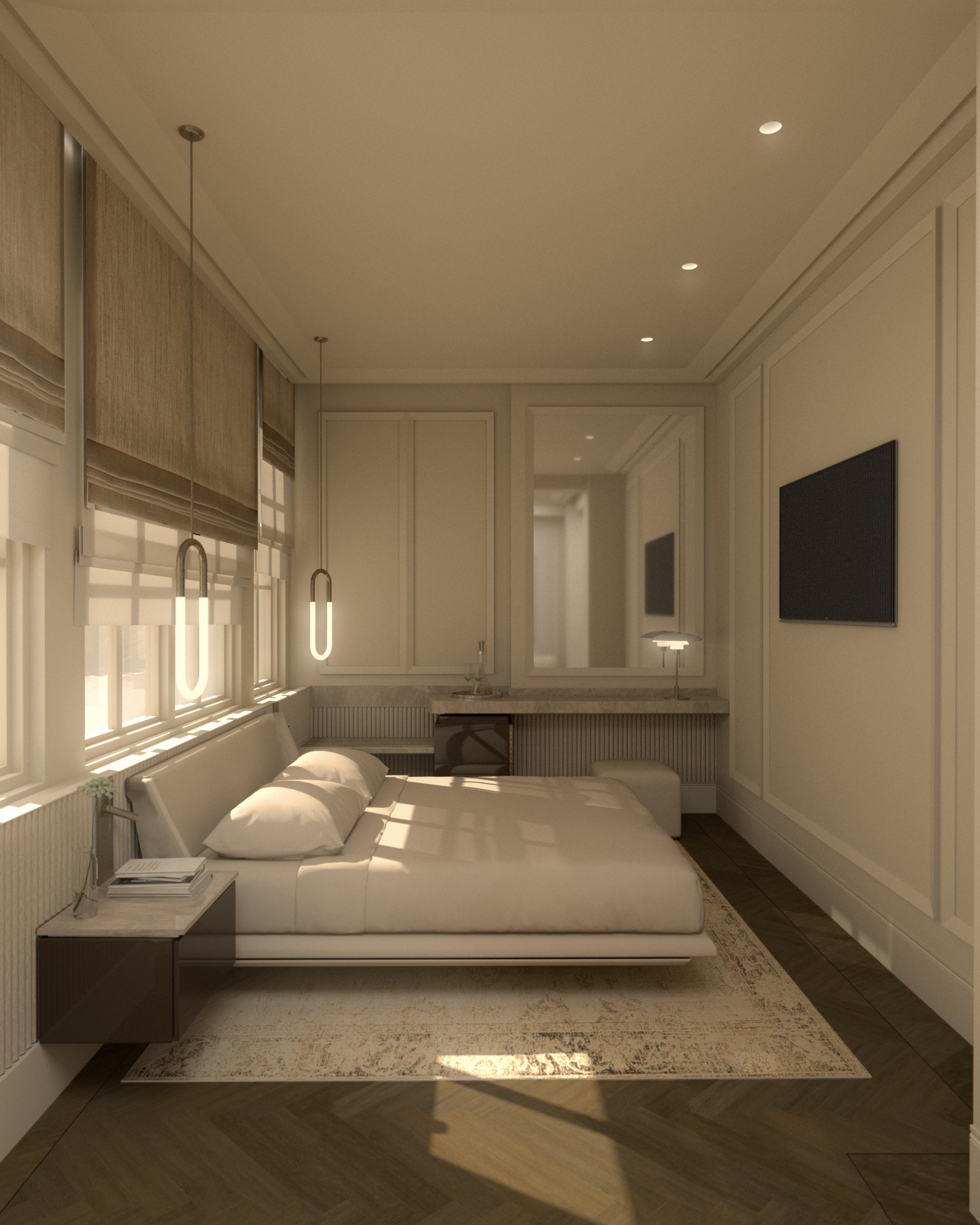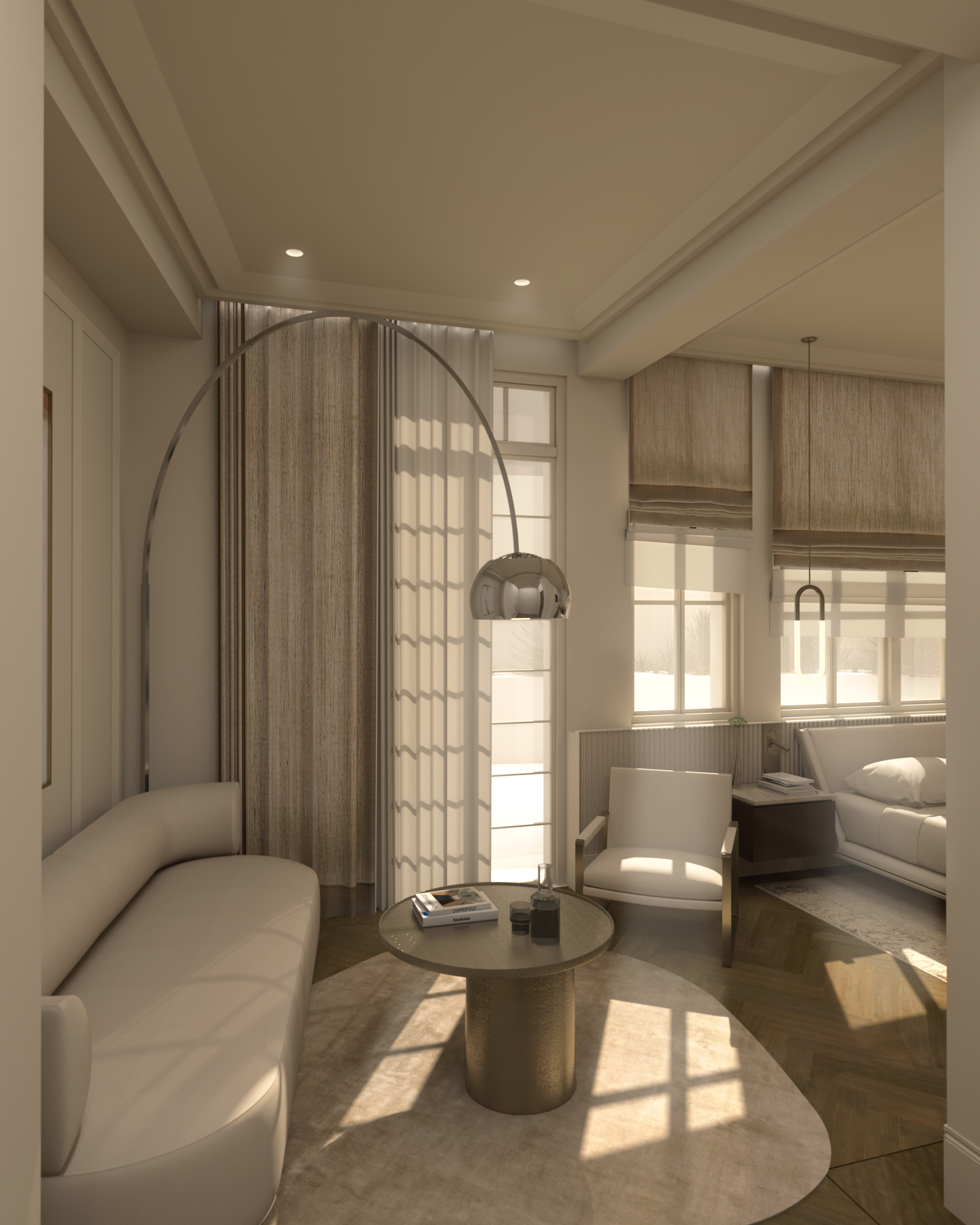 The interior aims for an elegant urban aesthetic that harmonizes with the traditional character of the historic center, enhancing and highlighting the building’s architectural identity while ensuring a sustainable and economically viable new use.